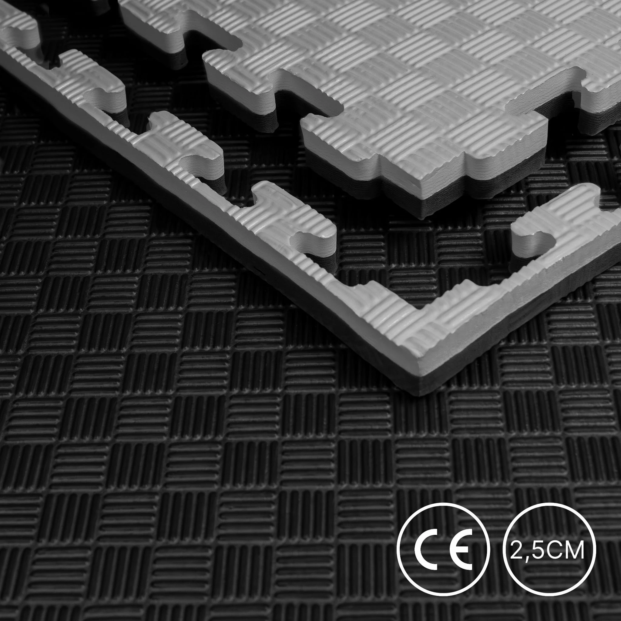 Mata 100 x 100 x 2,5cm Czarno-Szary Puzzel pod Sprzęt do Ćwiczeń na Siłownie Metrowe Piankowa Gruba