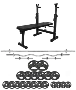Chcesz stworzyć własną, kompletną strefę treningową w domu? A może szukasz solidnego zestawu, który zapewni pełen zakres ćwiczeń siłowych? Ten zestaw 106 kg MOCNOSILNI to gotowe rozwiązanie — stabilna ławka, profesjonalne gryfy oraz wytrzymałe żeliwne obciążenia. Idealny zarówno dla początkujących, jak i zaawansowanych.
